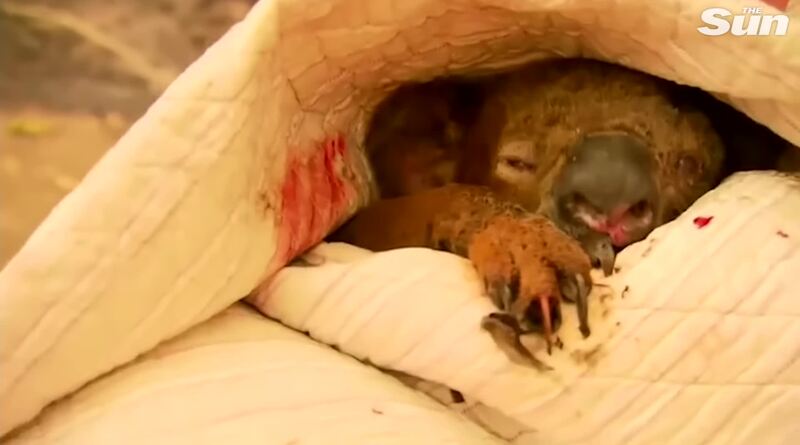 澳大利亚山火中,一只考拉被救下