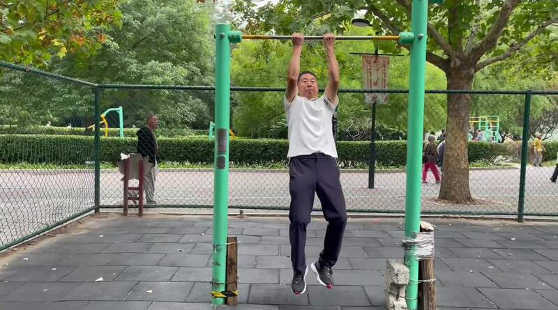 莲花池公园王总挑战引体向上