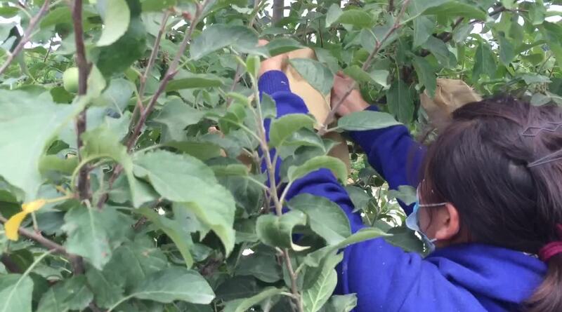 农庄苹果树戴上口罩