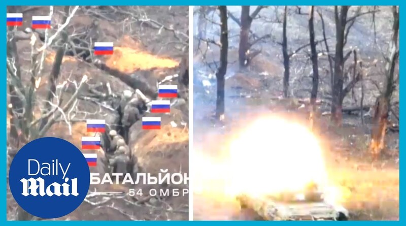 乌克兰坦克在险些幸存后摧毁了俄罗斯的战壕