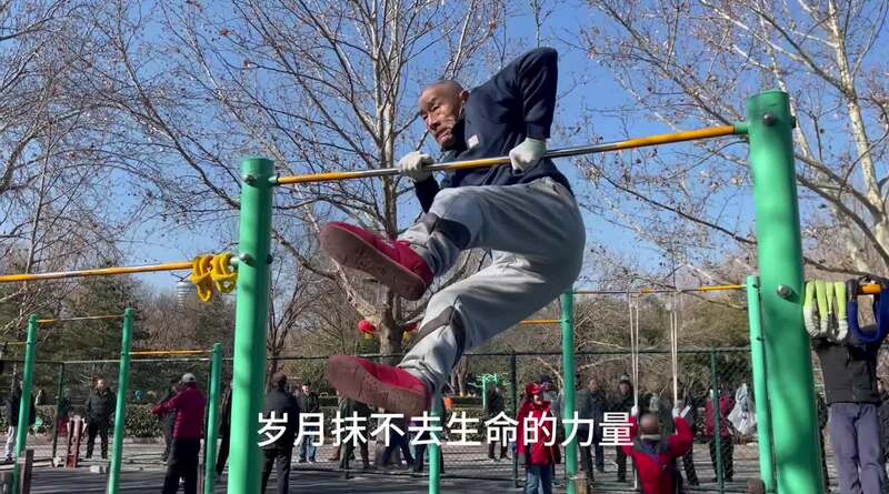 65岁开始玩单杠,72岁完成大回环,到现在80岁一上杠比小伙子还厉害,太牛了