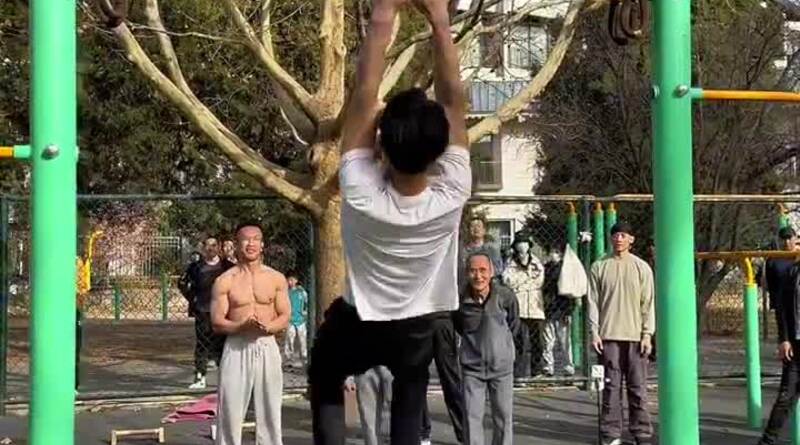 男女老少同杠,全民健身!